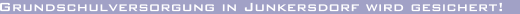 2014 wird an der Statthalterhofallee eine neue zweizügige Grundschule gebaut. Von Frau Dr. Klein haben wir die Zusage erhalten, dass mit einem Planungsvorlauf von fünf Jahren nach erfolgtem sofortigen Kauf des Geländes der Belgischen Schule und nach Abriss des alten Schulgebäudes eine neue zweizügige Grundschule gebaut wird. Damit hätten die Schulsorgen der junkersdorfer Eltern endlich ein Ende. Der Bebauungsplan als Schulgelände wird nicht geändert und die Verhandlungen zum Übergang des in Bundesbesitz befindlichen Geländes auf die Stadt werden noch geführt.