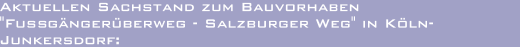 Viele von Euch, bestimmt jedoch die Anwohner der betroffenen Durchfahrtsstrassen durch unser Viertel haben bestimmt bemerkt, dass der Straßenverkehr in unserem Viertel stark zugenommen hat. Einer der Hauptgründe dürfte die Baustelle auf dem Salzburgerweg sein. Fraglich bleibt, ob sich die Situation später wieder entspannt.